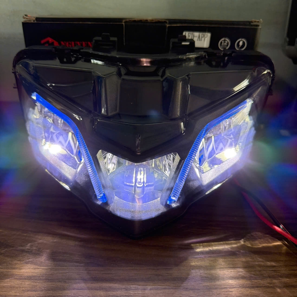 Chóa đèn trước dành cho Exciter 150 (mọi đời 2015–2021), tích hợp hệ thống LED demi thông minh có thể điều chỉnh bằng ứng dụng điện thoại (APP).